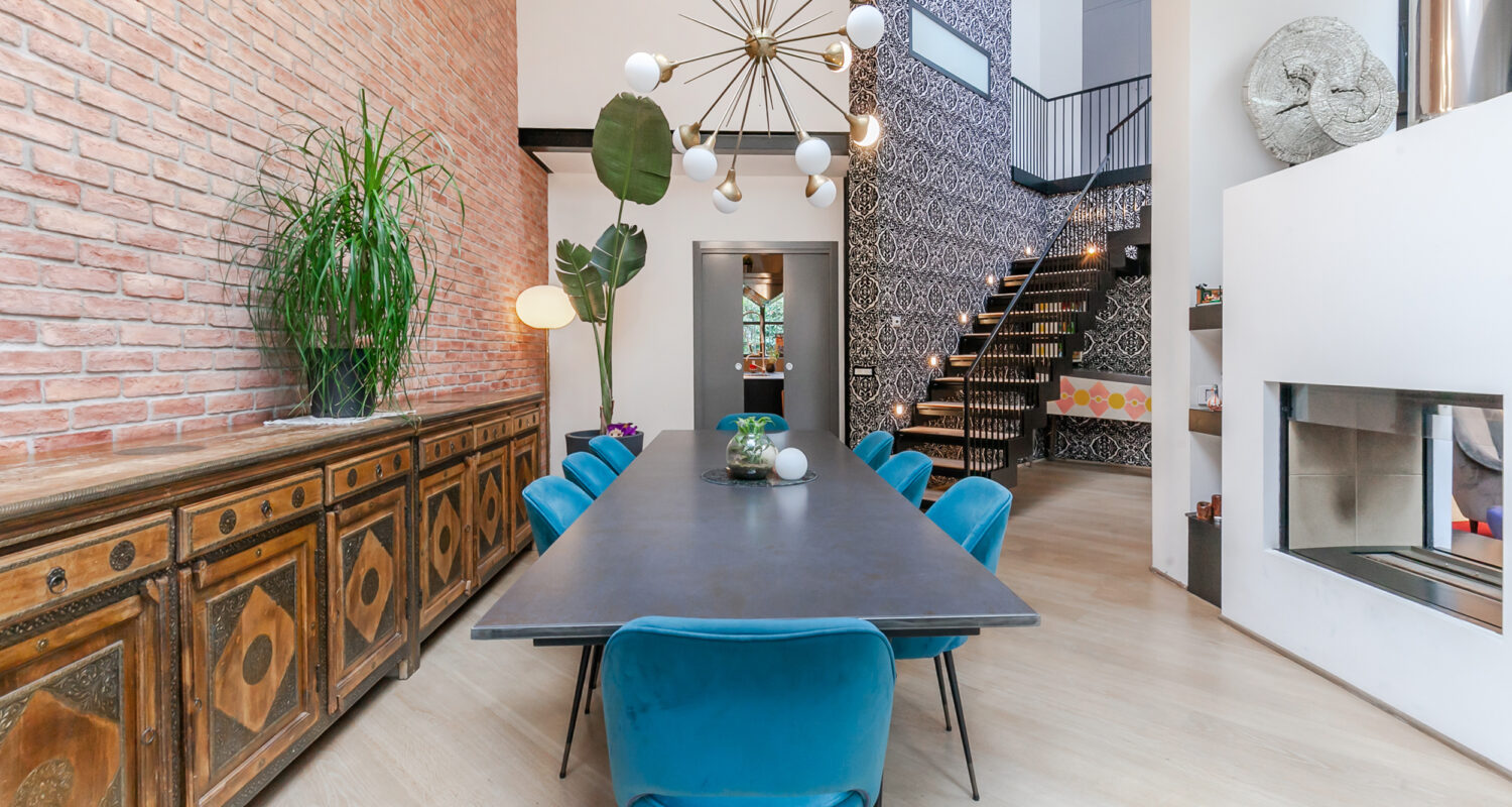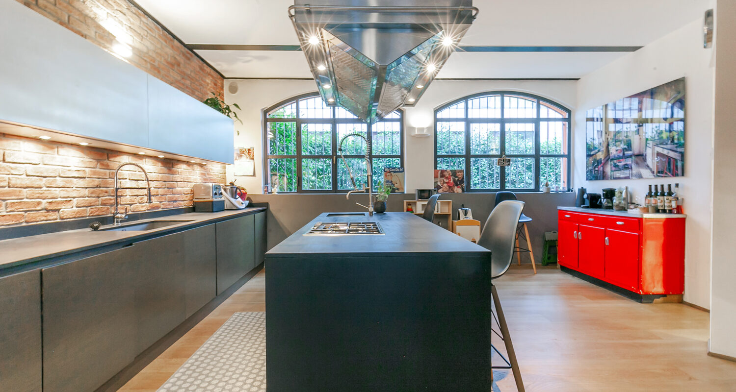 Milano, via Cesare Ajraghi, in complesso industriale oggetto di una completa trasformazione, in cui sorgono prestigiosi e moderni loft con ampi spazi aperti e verdeggianti, Deus Ex Casa propone in locazione esclusiva residenza con due giardini. L’appartamento di circa 310 mq, presenta ampi spazi aperti e soffitti altissimi, è disposta su due livelli, e si presenta in ottimo stato; essendo posizionato all’interno del complesso risulta un’oasi di pace nella metropoli meneghina. Si accede attraverso il primo giardinetto, da cui è possibile entrare anche nel box singolo. Appena varcato l’ingresso ci si immerge nello splendido ampio soggiorno, a tutta altezza, con vetrate sul giardino interno e un monumentale camino che divide la zona pranzo, da cui si può accedere alla grande cucina. Dal soggiorno si accede anche alla zona ospiti, con una camera ed un bagno separati. La scala al centro del soggiorno porta alla zona notte, dove sono presenti tre affascinanti camere, con soppalchi vivibili, e due bagni. Il quarto ed ultimo bagno è il bagno di cortesia per ospiti, ma anch’esso è di grande personalità. Un’ulteriore valore aggiunto è dato dal box doppio al piano interrato, che è collegato direttamente con l’appartamento.