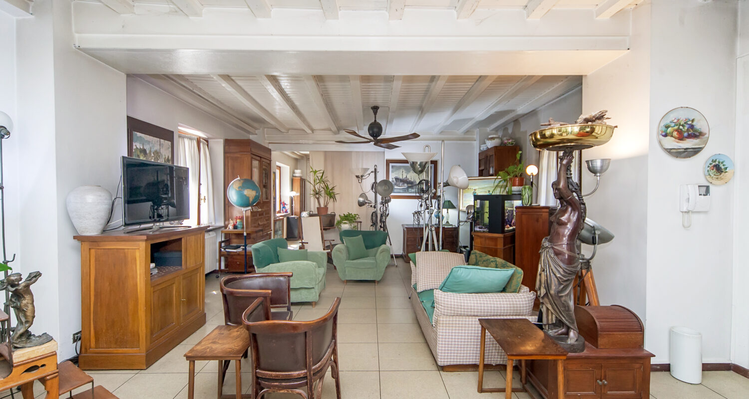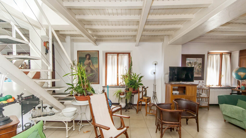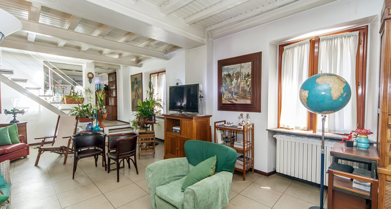 In Paolo Sarpi, in splendida cornice vecchia Milano, proponiamo esclusiva “casa di artista” di grande charme, con un terrazzo di circa 50 mq. L’appartamento è sito al primo ed ultimo piano del corpo basso dello stabile e presenta il soffitto con travatura sbiancata a vista. La pianta è molto regolare ed è composta da ingresso, soggiorno doppio, cucina abitabile, due camere ampie con bagni en suite, oltre a locale lavanderia. Dal soggiorno, una scala interna porta alla veranda da cui si accede allo scenico terrazzo.